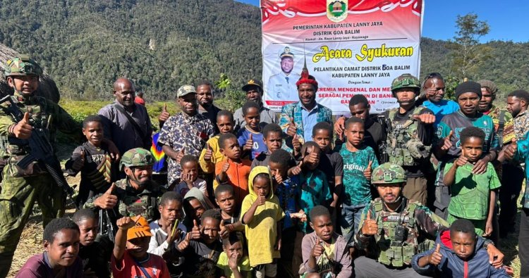 LANNY JAYA - Dalam rangka memperkuat sinergitas dengan pemerintah daerah, Satgas Yonif 408/Sbh melalui Pos Wamitu turut serta merayakan pelantikan Camat Goa Balim terpilih, Yeheskil Kogoya, dalam acara syukuran yang digelar pada Sabtu, 18 Oktober 2025. Acara tersebut berlangsung meriah di depan Kantor Camat Distrik Goa Balim, Kabupaten Lanny Jaya.