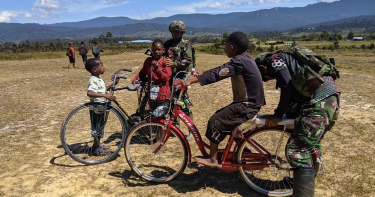 LANNY JAYA - Suara tawa anak-anak menggema di antara kabut pegunungan Kuyawage, Kabupaten Lanny Jaya. Di jalanan tanah yang sederhana, sekelompok prajurit Satgas Yonif 408/Sbh Pos Kotis Kuyawage tampak sabar mendampingi anak-anak Papua belajar naik sepeda sesuatu yang baru pertama kali mereka rasakan.